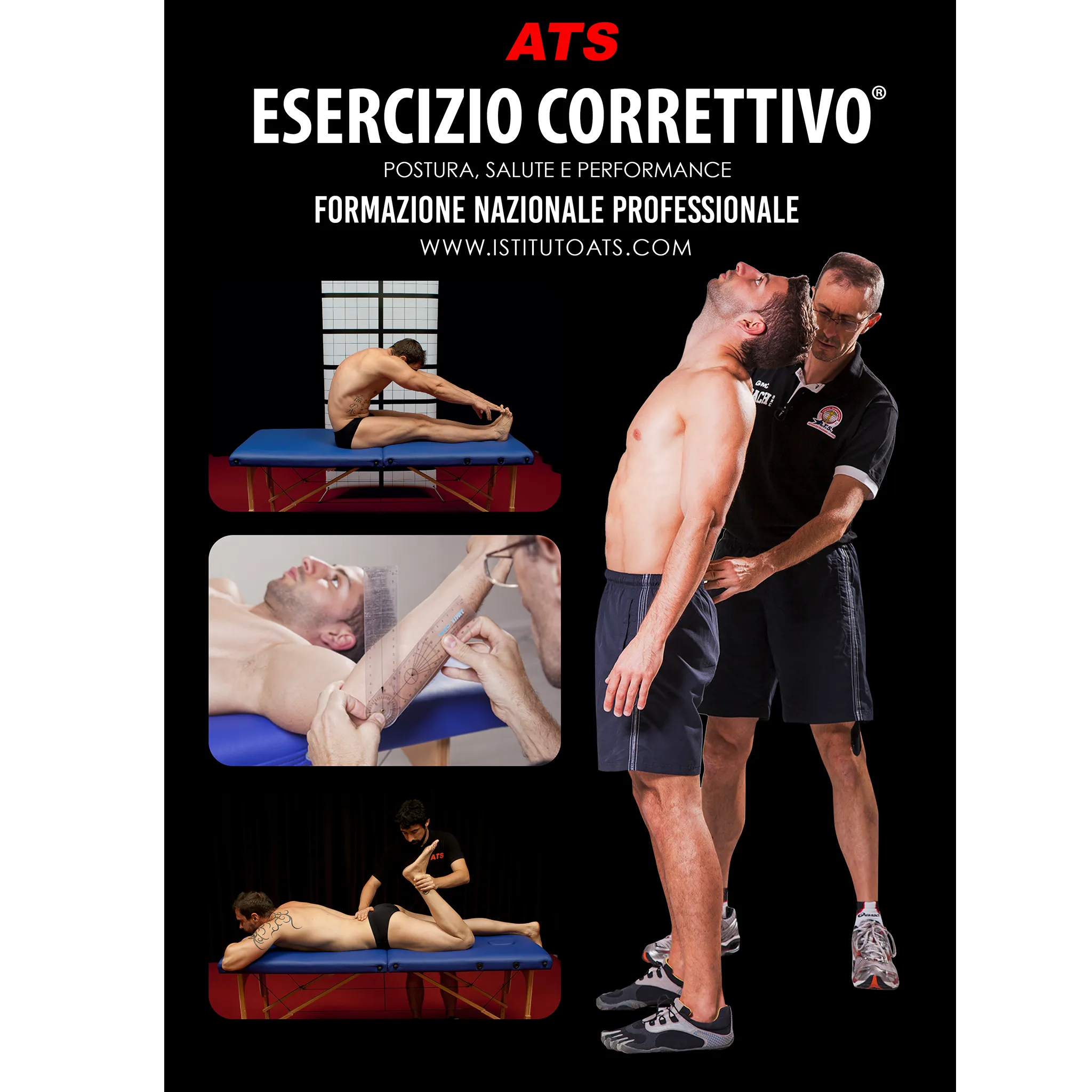 Esercizio Correttivo® è un marchio registrato che rappresenta un preciso metodo, basato su fasi, sequenze d’indagine e applicazione dell’esercizio fisico, volto alla rieducazione, al riequilibrio e alla riabilitazione. Esercizio Correttivo si distingue dai numerosi approcci rieducativi e al movimento umano presenti sul mercato, innanzitutto per la capacità di effettuare una corretta valutazione, identificare squilibri e disfunzioni e creare programmi allenanti efficaci. Presentiamo la versione più aggiornata e completa degli ultimi 10 anni, frutto di uno straordinario lavoro condotto nei laboratori ATS insieme ai migliori specialisti nel settore delle scienze motorie, della fisioterapia, delle tecniche ortopediche, della podologia, dell’osteopatia e della medicina. Con Esercizio Correttivo® potrai apprendere le soluzioni più complete e sicure per offrire un servizio altamente professionale ai tuoi clienti.